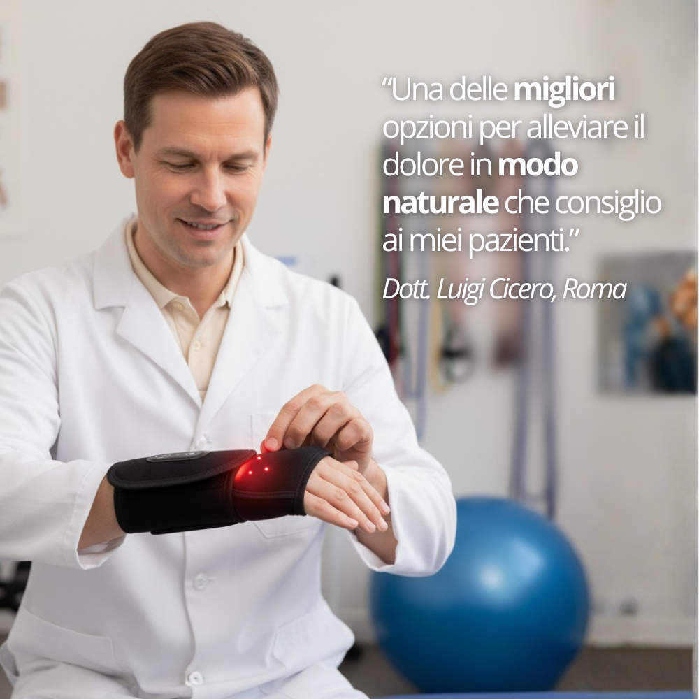 Assolutamente sì, è sicuro. LiberaPolso© usa la stessa tecnologia della luce rossa utilizzata dai fisioterapisti e nelle cliniche da anni. È non invasivo, drug-free, e non produce calore eccessivo. Non ci sono effetti collaterali noti. Se hai pacemaker o sei in gravidanza, consulta il tuo medico prima dell'uso (precauzione standard).