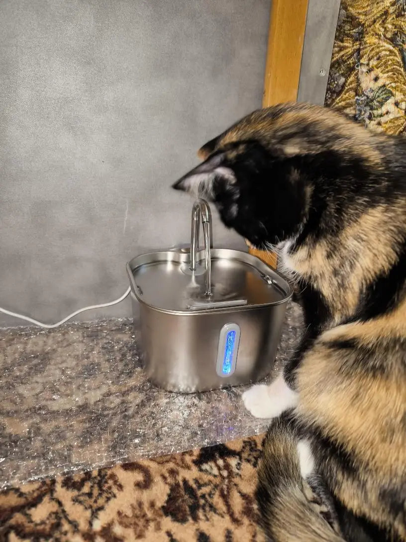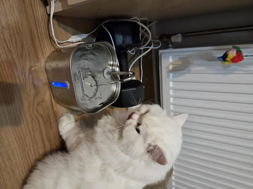 Il nostro filtro a carbone attivo a triplo strato rimuove odori, batteri e biofilm invisibili che allontanano i gatti dalle ciotole. Abbinato a un flusso delicato e all'infusione di ossigeno, riproduce l'effetto di un fresco ruscello di montagna, irresistibile anche per i gatti più esigenti. I nostri clienti riferiscono che l'assunzione di acqua dei loro gatti è triplicata in pochi giorni, contribuendo a prevenire dolorosi blocchi prima che si verifichino.
